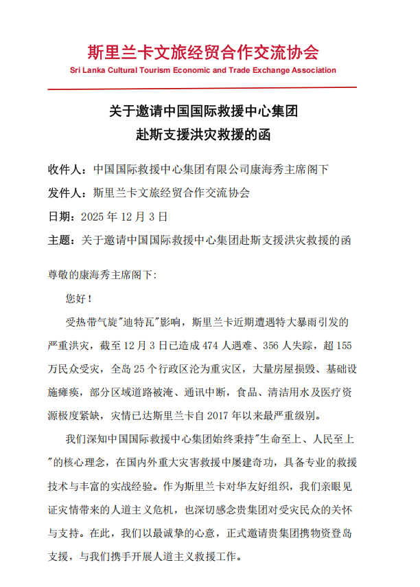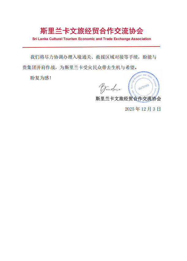 截至2025年12月17日,你们已在斯里兰卡抗洪救灾一线连续鏖战十二昼夜。跨越山海驰援重灾之地,你们以无畏逆行的担当、无疆大爱的善举,赢得了斯里兰卡政府与民众的深切赞誉,更收获了全球各界的广泛称颂。。